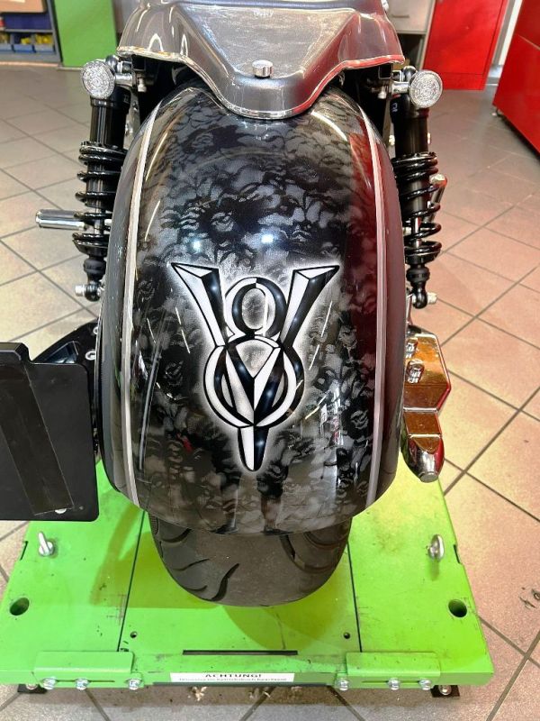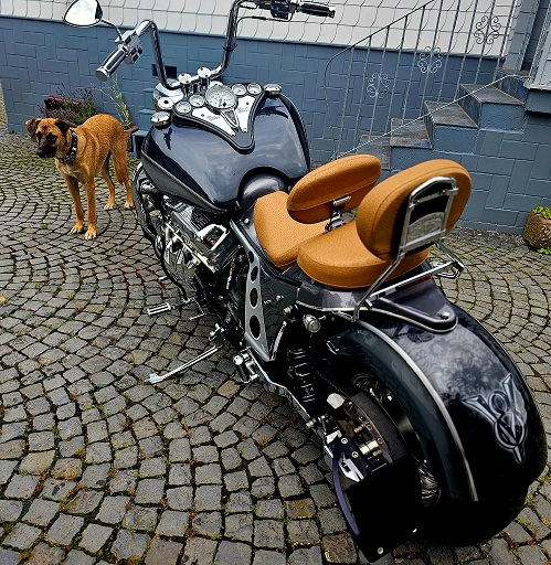 Also Samstags ohne Anmeldung mal hin da dort einige zur Auswahl stehen. Mitarbeiter top und hat mich erstmal über verschiedene Merkmale etc. aufgeklärt. Dann hatt meine Frau Sie ggesehen. Stand da mit Roter Nummer da gerade frisch getüvt. Wenn ich mich recht erinnere sollte der BigBlock eig. in der Firma bleiben und selbst umgebaut werden. Weiß ich aber nicht mehr genau. Also gefragt und klar.. Probefahrt. Angemacht im Verkaufsraum mit offener Anlage.. Da braucht man nichts zu schreiben.. Hammer. Draußen aber genauso. Ein Grollen und Vibrieren des Bodens im vorbeifahren.. ich war beeindruckt. Kurz laufenlassen nochmal erklären lassen und ab gings. Mitarbeiter voraus ganz klar, war mir recht, kannte mich ja nicht aus! Beschleunigung Fahrverhalten kennt ihr alle, aber für mich war es doch meiner PS starken Moppeds doch beindrucken. Dieser Druck nach vorne... Zurück von der Probefahrt hat die Frau das Grinsen gesehen und es ging zum Fränky. Kurz das Finanzielle geregelt sowie Umlackierung und Umbauten dann per Handschlag besiegelt.